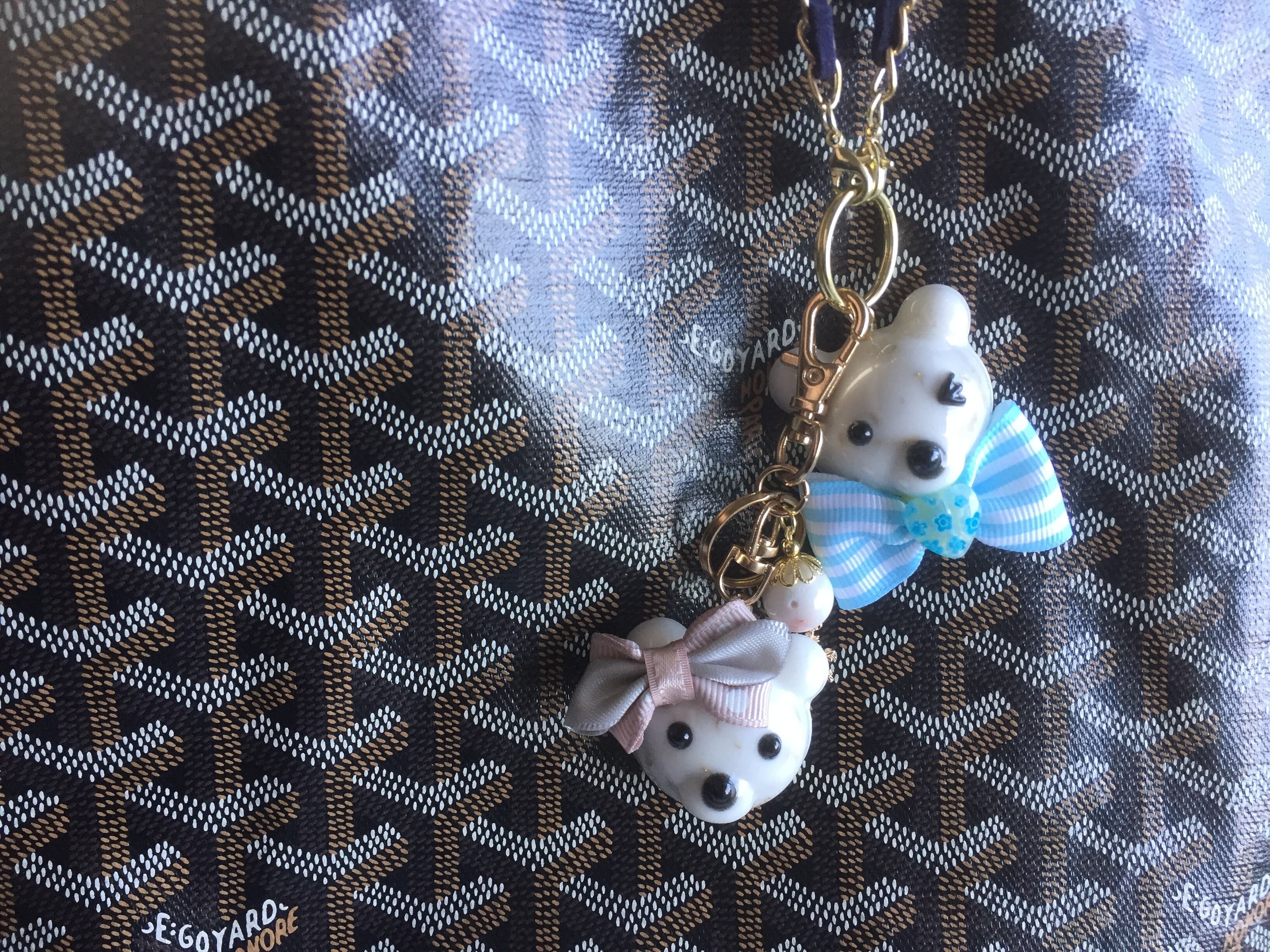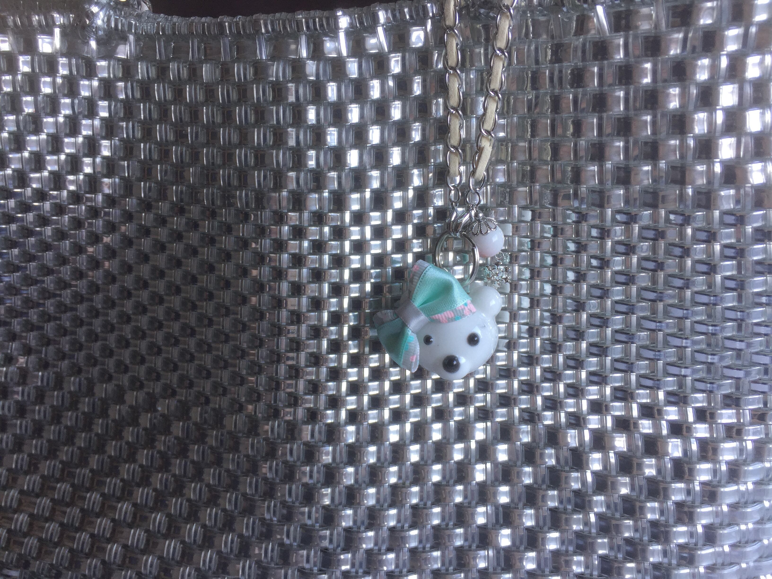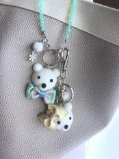 オルゴナイト☆シロクマさんのバッグチャーム女の子バージョン♪お揃いリボンピン付vol1
